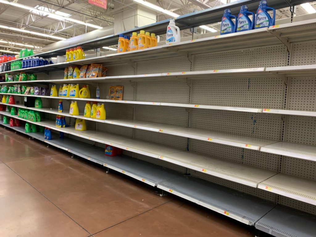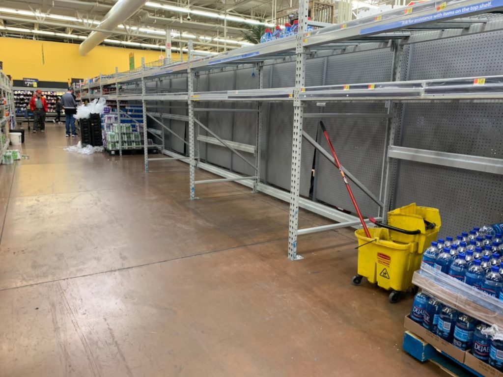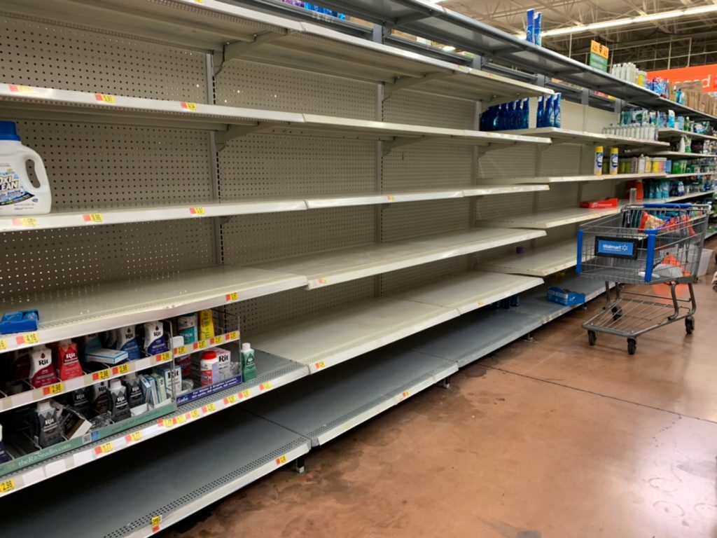 今回訪れた店舗は、Walmart Supercenterです。店内の様子を見てきましたが、案の定、一部の商品棚はガラガラの状態です。